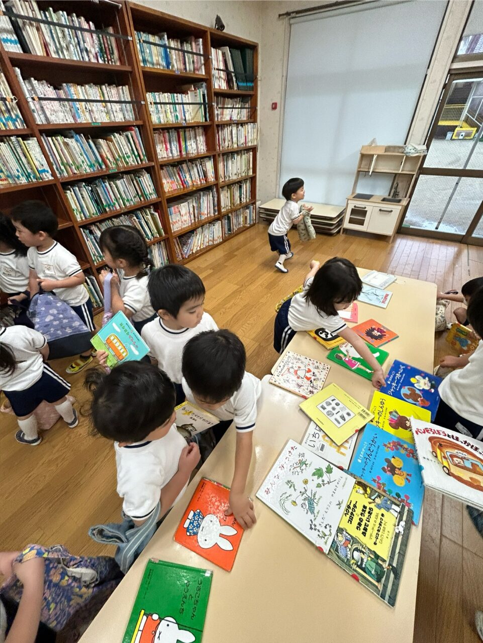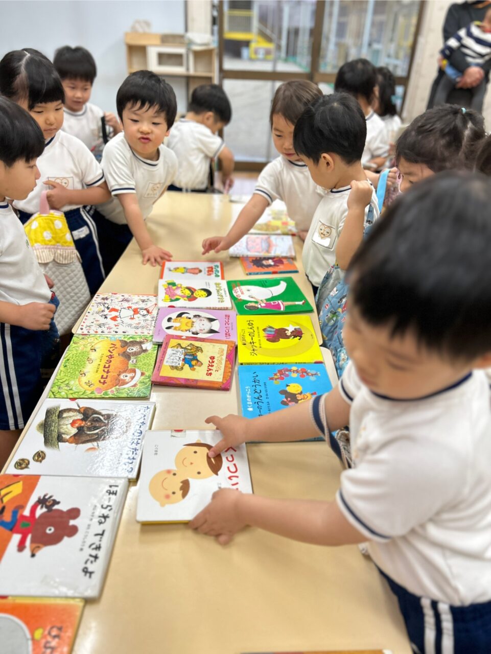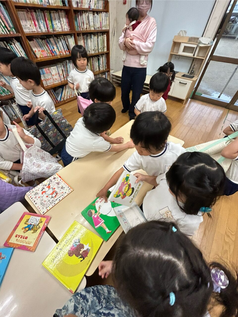 今日は、年少組さんと年長組さんの『絵本貸出デー📚』