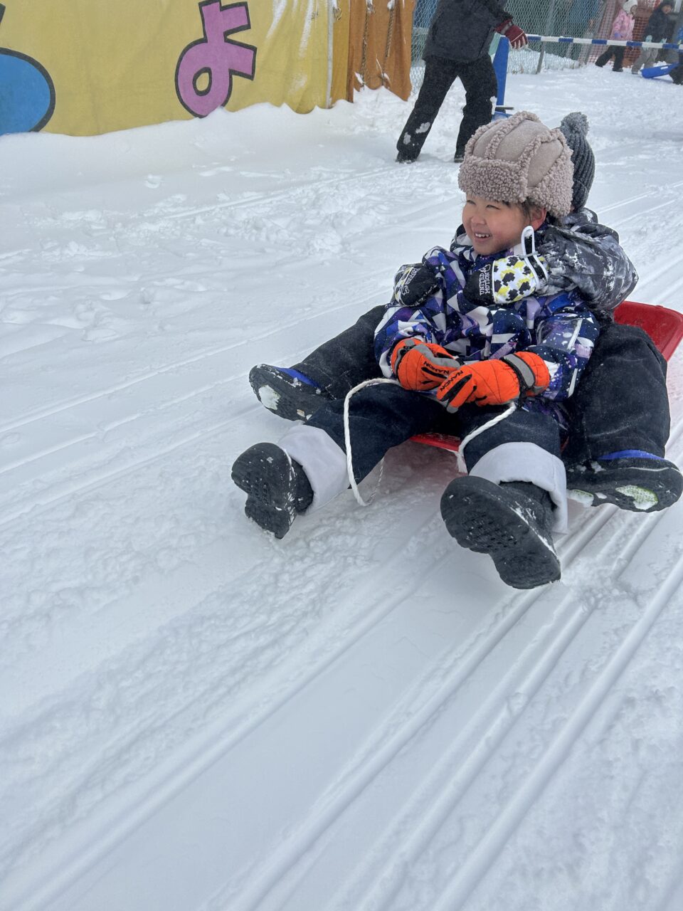 ↓雪が新しくてなかなかすべりませんでしたが、おもしろかったようです☆彡