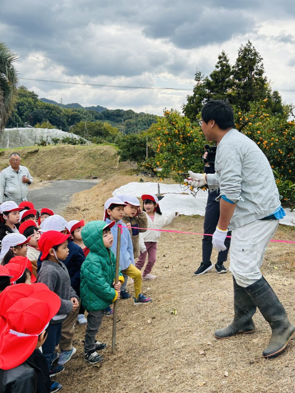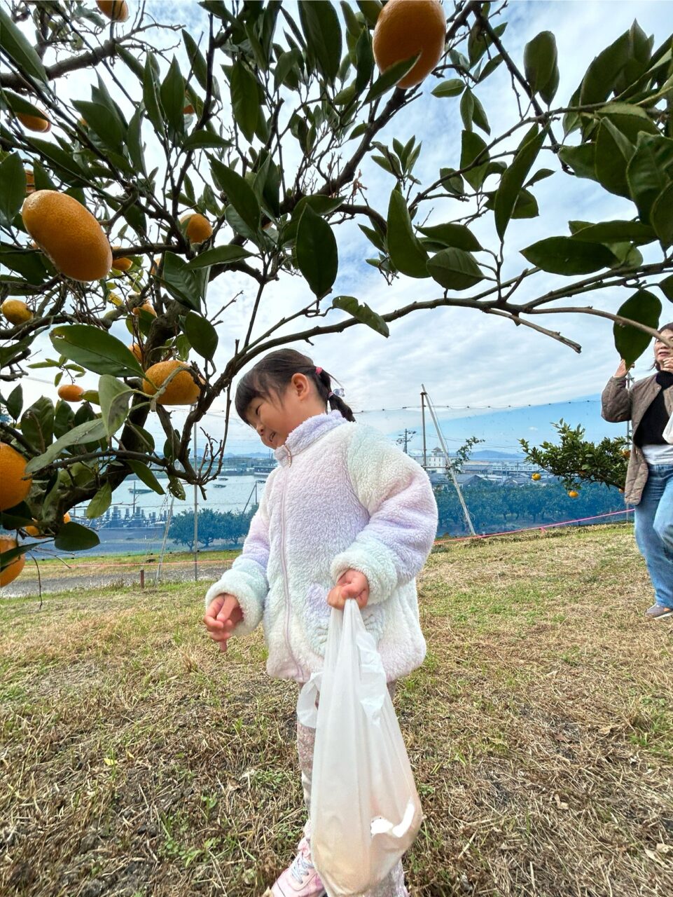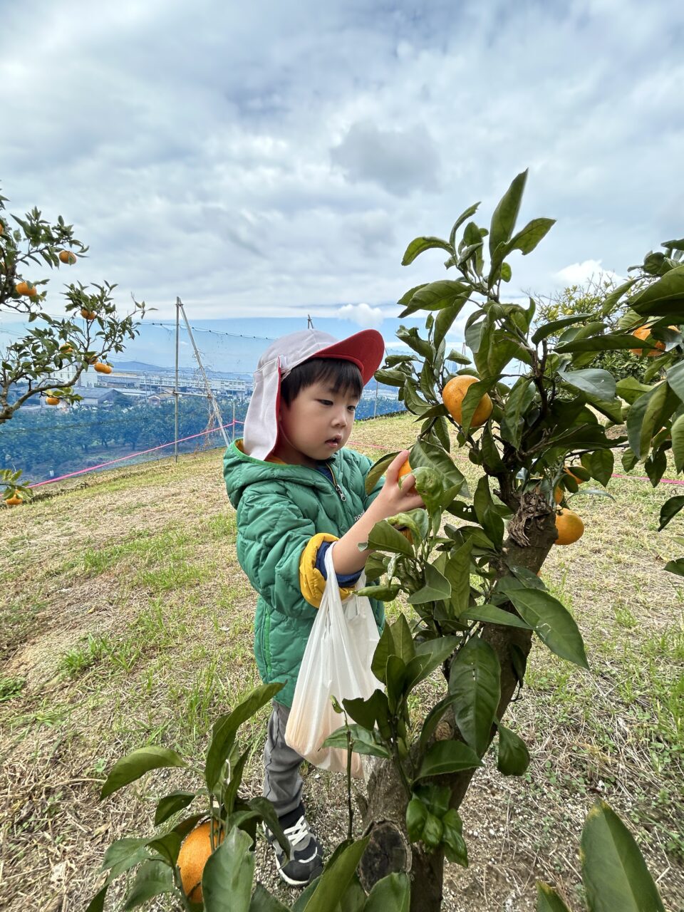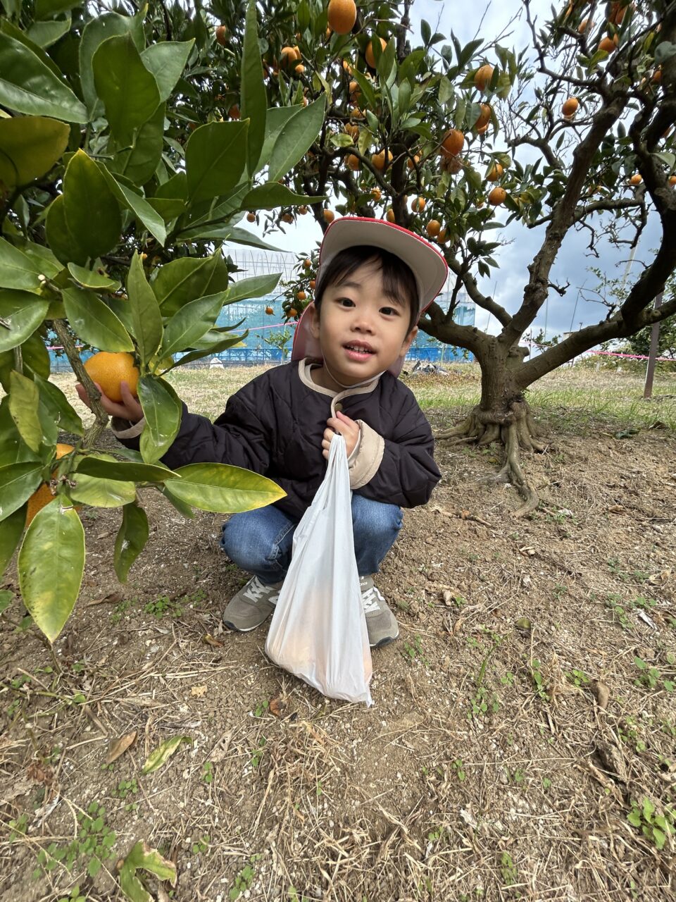 お手伝いに来てくださったお母さんやお父さんにサポートをしてもらいながら、ミカン狩りしていきます(*^▽^*)
