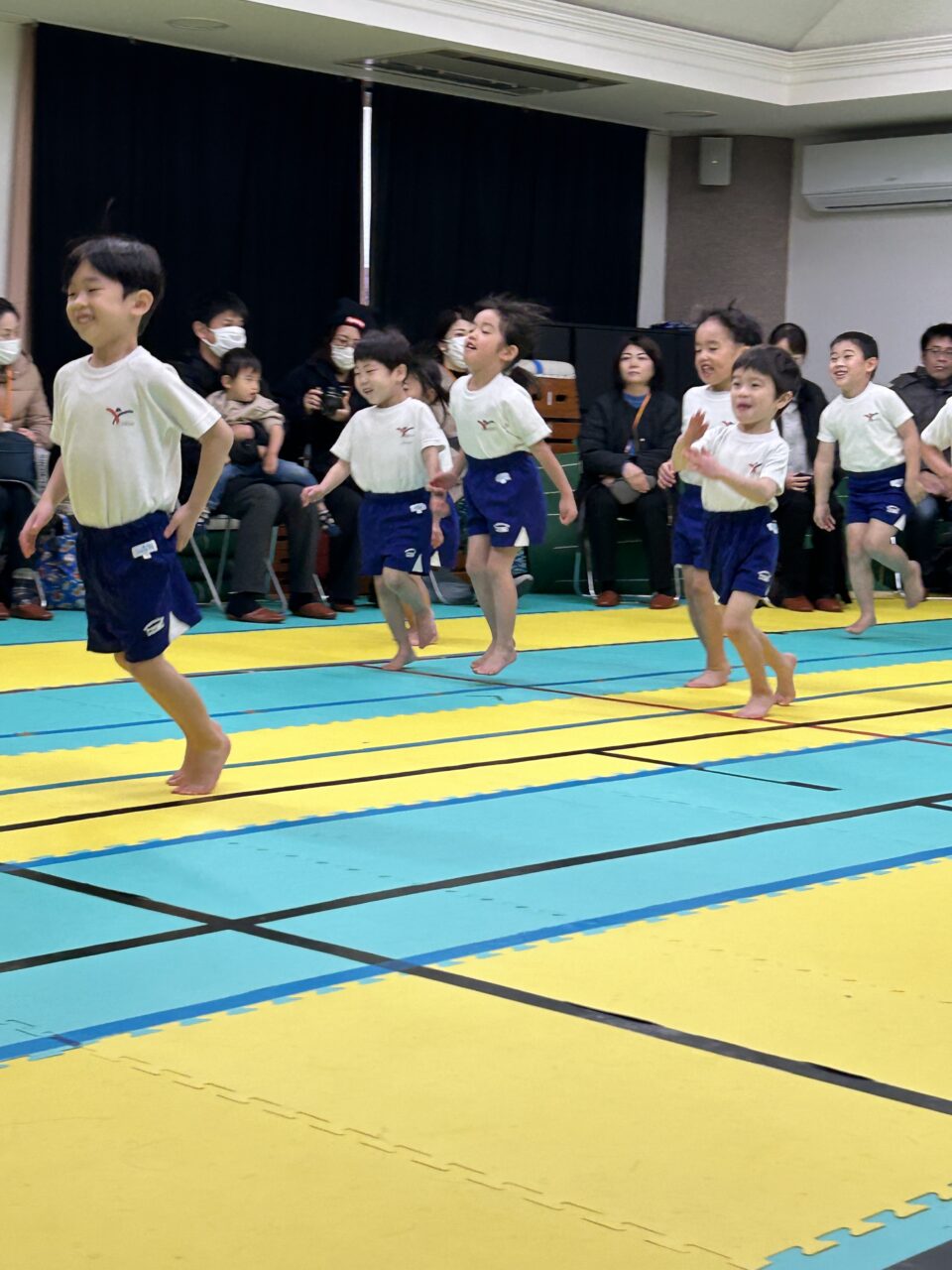 どうやったら両足で大きく前に飛び跳ねることができるかを体で覚えていきます(*^-^*)