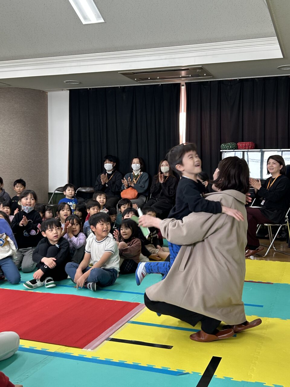 お誕生日月の子どもたちは台に上がり、お母さんやお父さんにお誕生日のお手紙を読んでもらいます(*^-^*)その瞬間の顔はというと、気恥ずかしいような、でもとっても嬉しい気持ちがあふれ出ていました🎵