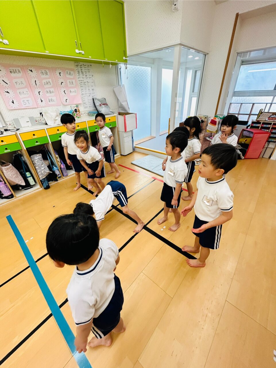 兄弟で体操の練習をしていました(*^^*) 弟くん(年少さん)がチャレンジしに来たようです🎵