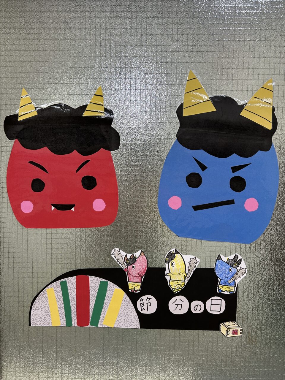 ↑子どもたち(年長組さん☆)が作ったオリジナルの鬼のお面でした(*^-^*)