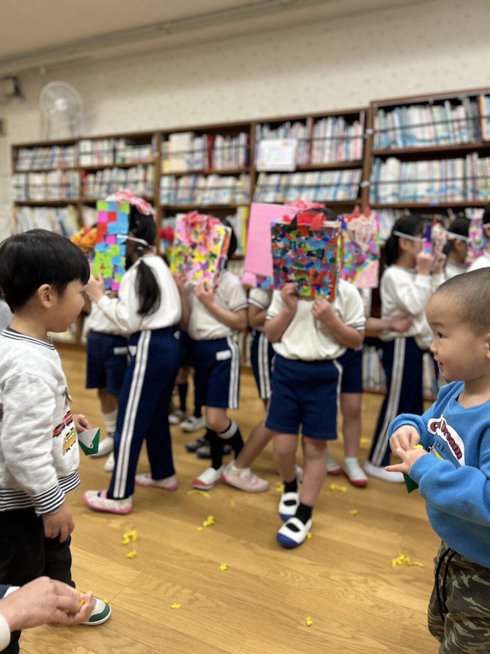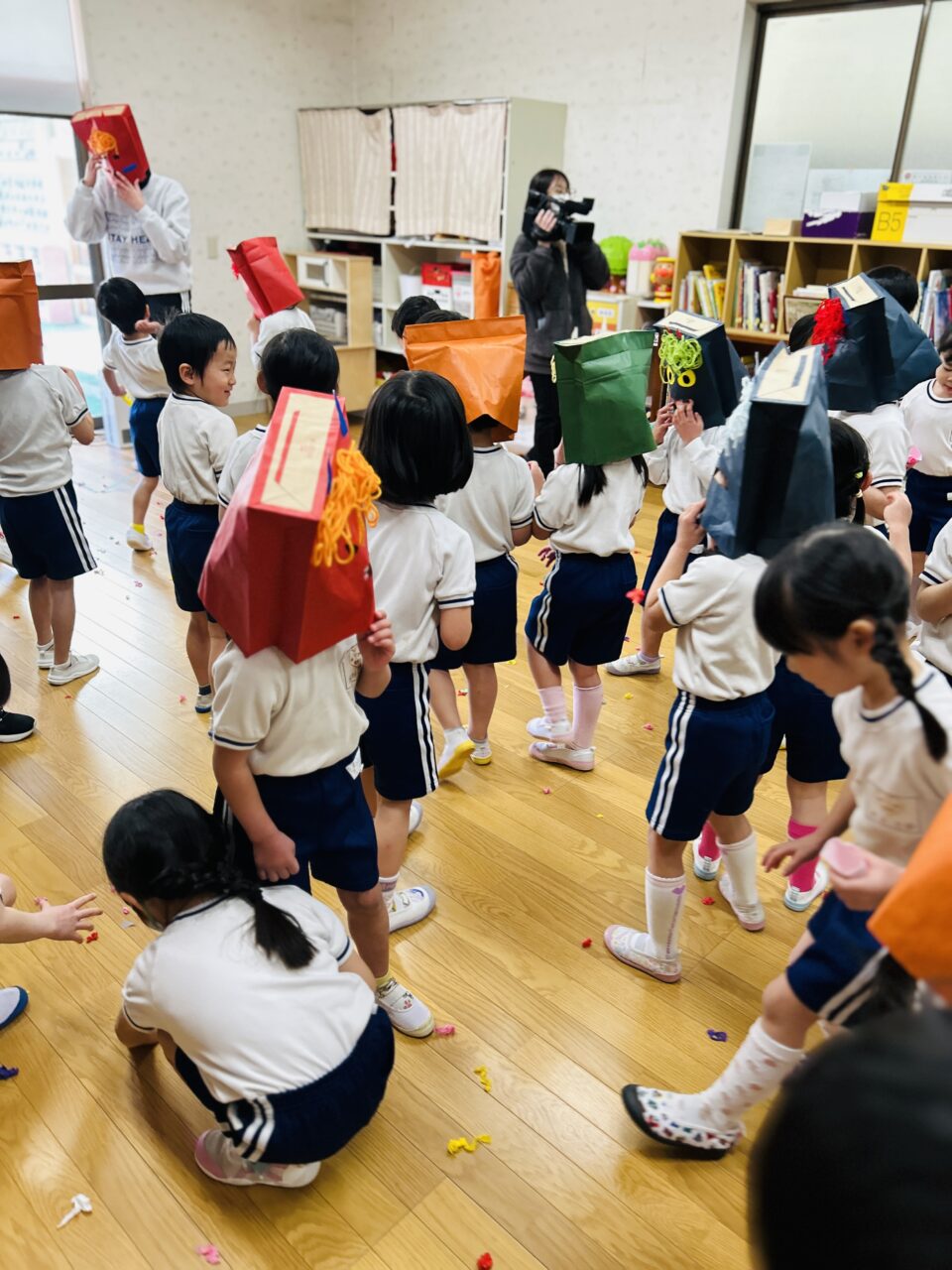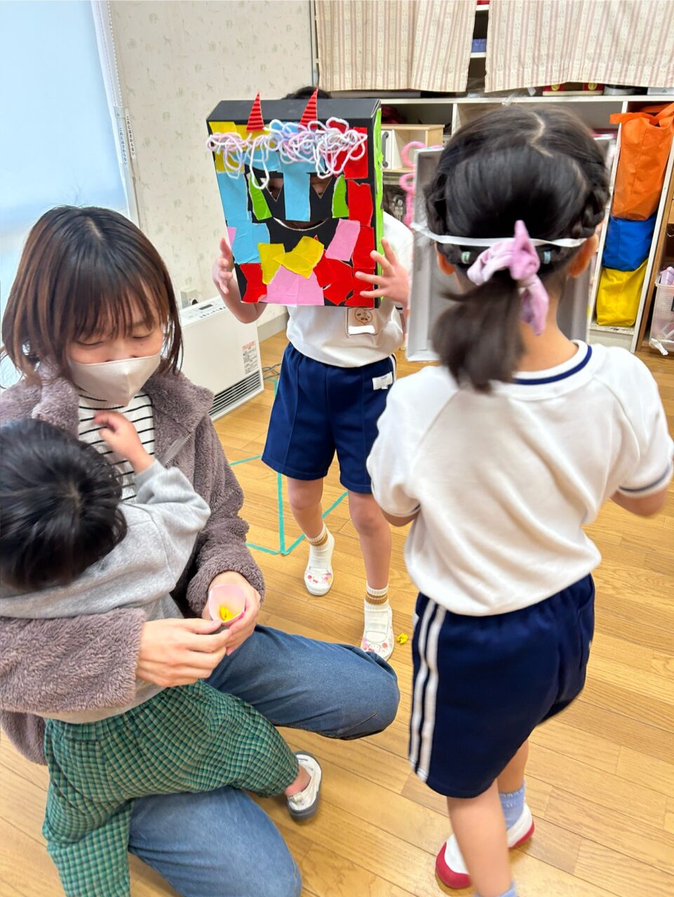 ↑年中組は、オニ役と豆まき役をクラスで交代しながら楽しみました🎵