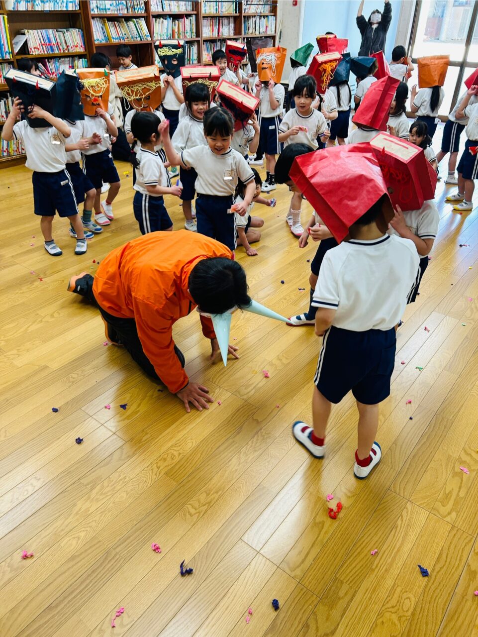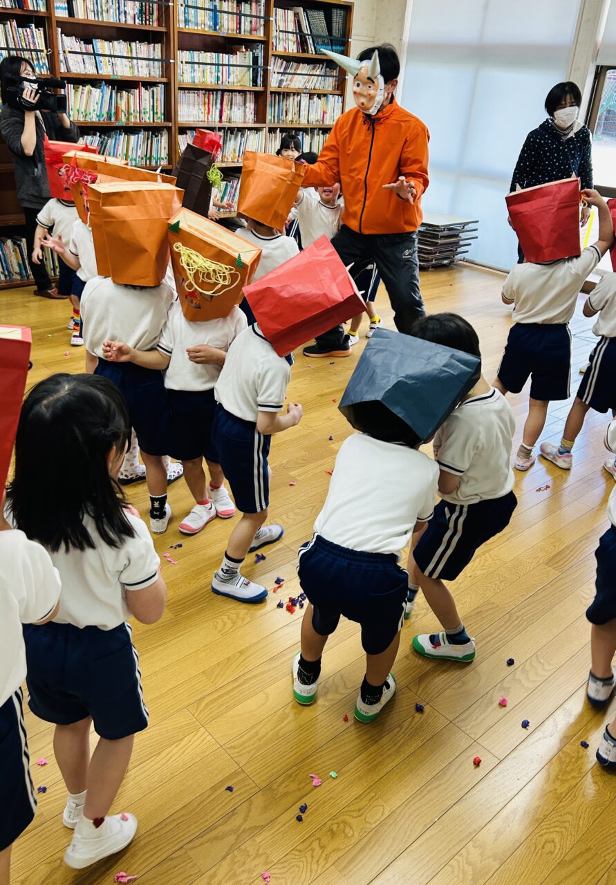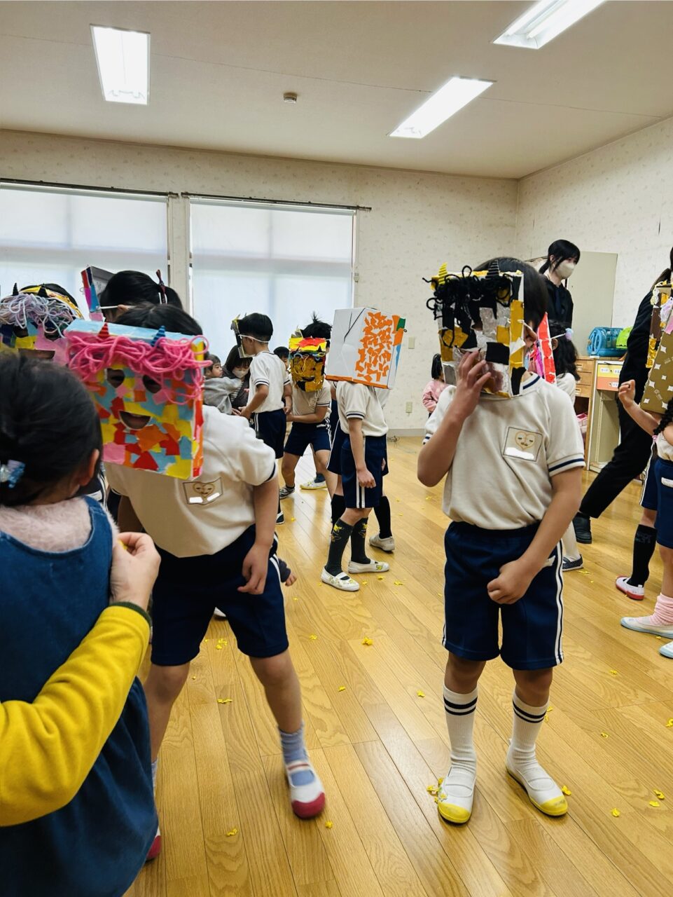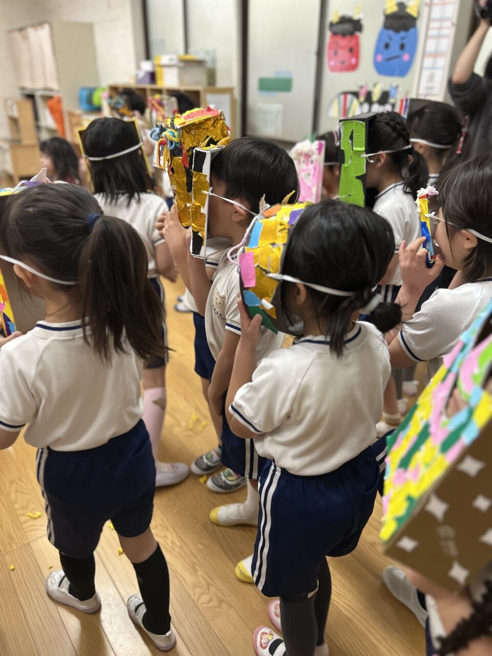 ↑年中組は、オニ役と豆まき役をクラスで交代しながら楽しみました🎵