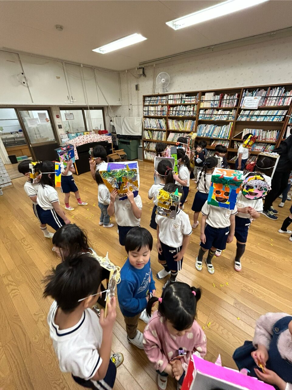 ↑プレ幼稚園(うさぎ組🐇)の子どもたちが、豆まきの豆(やさしい手作りのもの)を持って、ドキドキワクワクしながら待っています☆彡