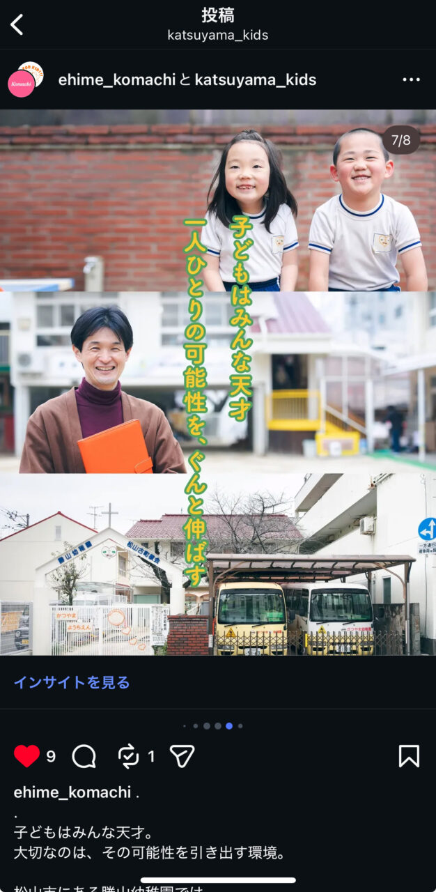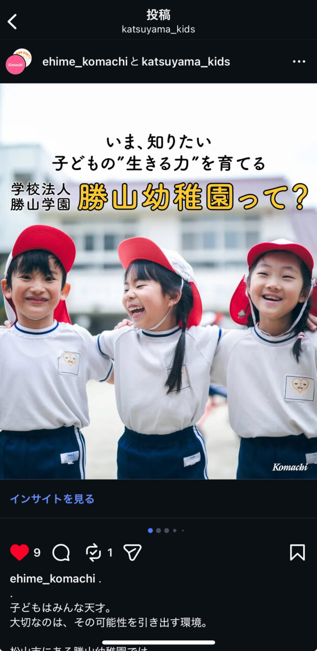 今日、勝山幼稚園の「保育/教育」について、インスタグラムでアイクコーポレーション(愛媛Komachi)さんに紹介していただきました☆彡